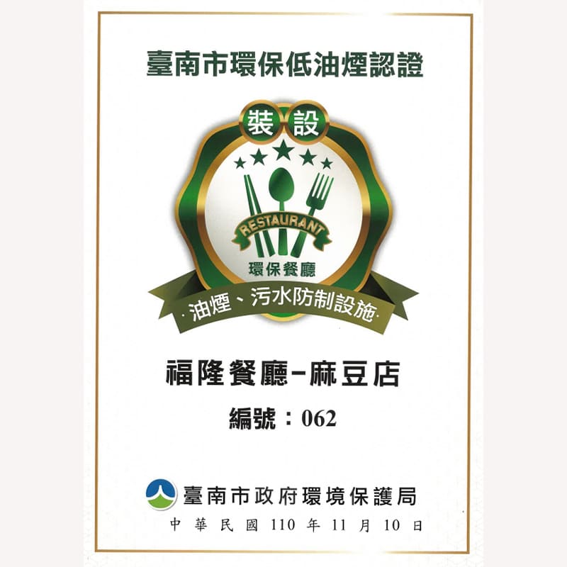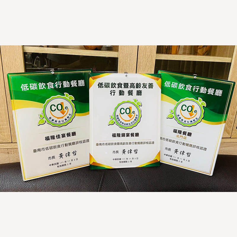 賀 本餐廳榮獲 台南市低碳飲食暨高齡友善餐廳評核